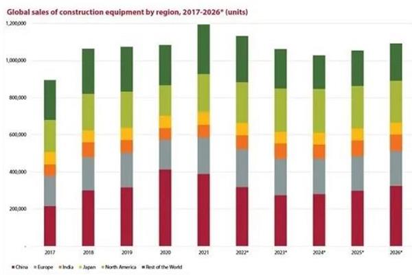 據Off-Highway Research調研數據,2021年全球工程機械設備銷量增長10%,達到119.6 萬臺的新紀錄(略高于之前預測的113萬臺)。預計2022年需求將下降5%。全球設備銷售預測(來源:Off-Highway Research)Off-Highway R…......