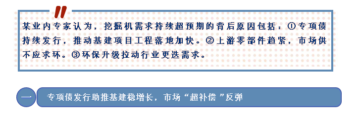 當(dāng)前,我國疫情防控阻擊戰(zhàn)取得重大戰(zhàn)略成果,工程機械產(chǎn)業(yè)鏈上下游各企業(yè)復(fù)工復(fù)產(chǎn)有力推進,加之基建投資的趕工需求,拉動了對挖掘機等工程機械設(shè)備的需求。