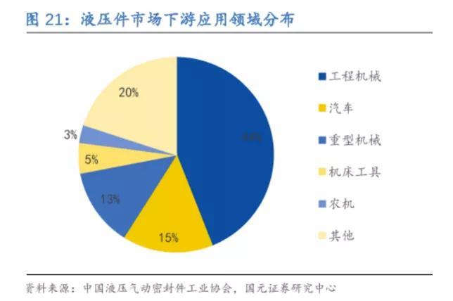 據(jù)產(chǎn)業(yè)鏈調(diào)查,當(dāng)前國產(chǎn)液壓件龍頭是滿產(chǎn)狀態(tài),而液壓件下游44%應(yīng)用于工程機械。
